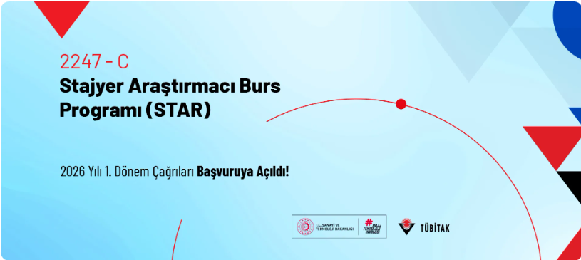 Türkiye Bilimsel ve Teknolojik Araştırma Kurumu (TÜBİTAK) tarafından yürütülen 2247-C Stajyer Araştırmacı Burs Programı (STAR) kapsamında 2026 yılı 1. dönem çağrıları başvuruya açılmıştır.